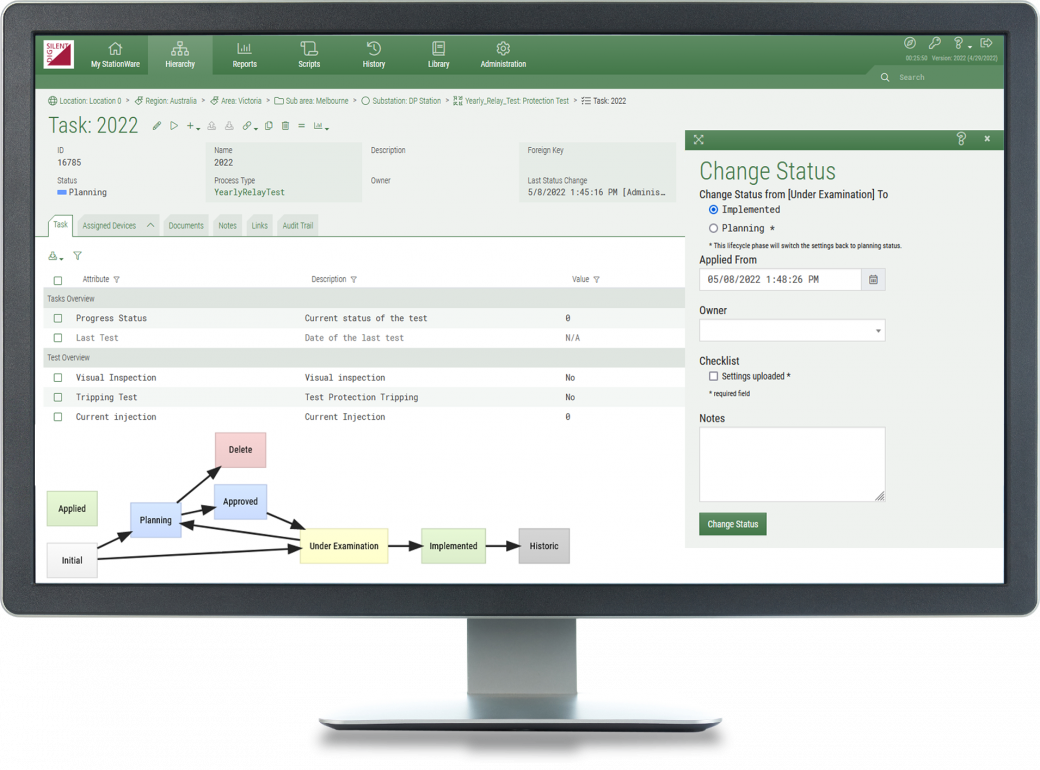 • 工作流程自訂:為符合各企業內部作業流程,StationWare 可建立並管理 公司專屬工作流程,有效支援與電氣設備與保護設定相關的全生命週期管理。