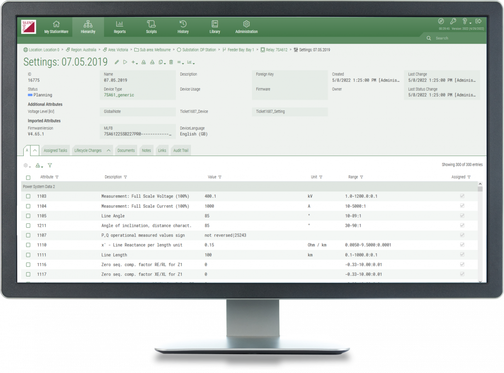 DIgSILENT StationWare 是一套專為電力系統 一次設備與二次設備 設計的集中式資產管理系統。隨著現代電網中數位式繼電保護裝置數量持續增加,各裝置的獨立設定需嚴謹管理,以確保整體系統的可靠運行。